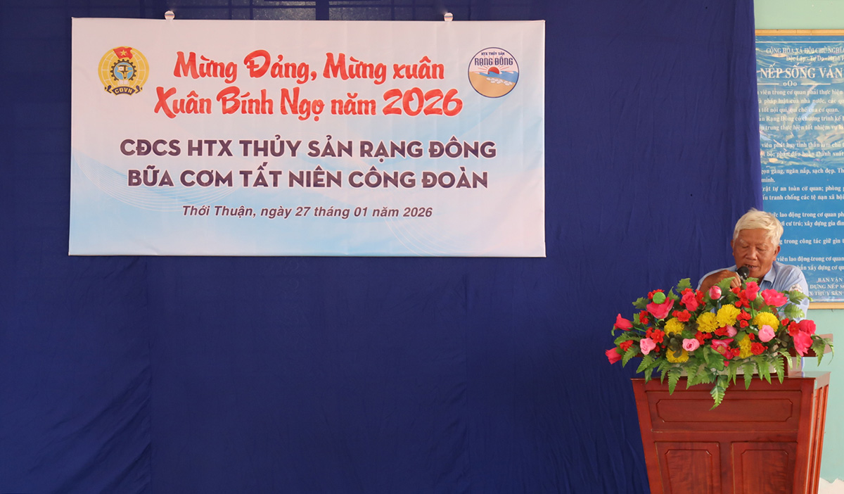 Trong không khí rộn ràng của những ngày giáp Tết, thực hiện theo Kế hoạch số 08/KH-LĐLĐ ngày 10/01/2026 của Liên đoàn Lao động (LĐLĐ) tỉnh Vĩnh Long, Công đoàn cơ sở HTX Thủy sản Rạng Đông vừa tổ chức "Bữa cơm tất niên Công đoàn". Đây là hoạt động thiết thực nhằm chăm lo đời sống tinh thần cho người lao động sau một năm miệt mài sản xuất.