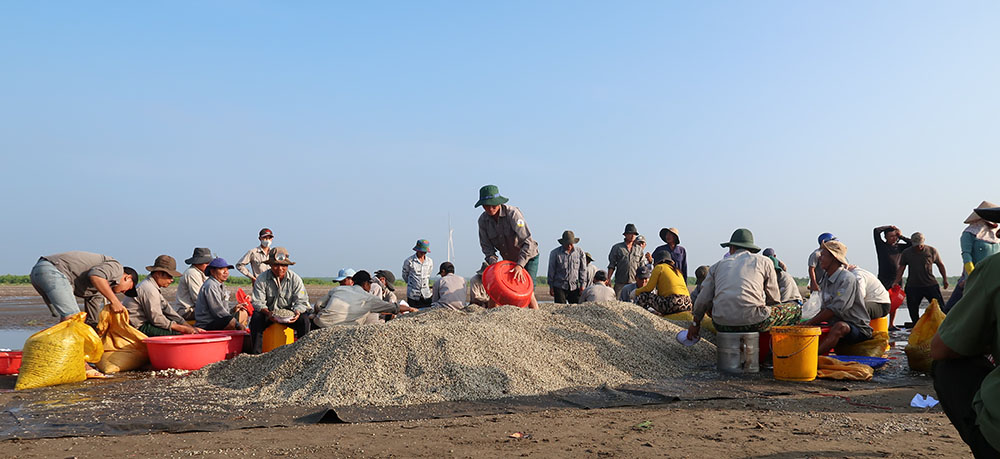 Khai thác 26 tấn nghêu giống tại Chốt Bạch Long – Đóng góp cho thị trường, đem lại doanh thu cho Hợp tác xã và tạo việc làm cho thành viên là người lao động